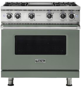 The Viking® 5 Series 36” Eucalyptus Gas Sealed Range with 4-Burner and Griddle is an excellent choice for homeowners looking for both style and performance. The Eucalyptus finish adds a unique and refreshing touch to any kitchen, while the range's powerful features.Read More
